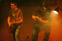 spielt die Western-Gitarre, schaltet hier und da den „Verzerrer“