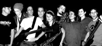 gepaart mit verzerrten Gitarren-Riffs, unterstützt von Bläser-