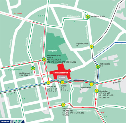 hier fahren öffentliche Verkehrsmittel das Schlossgrabenfest in