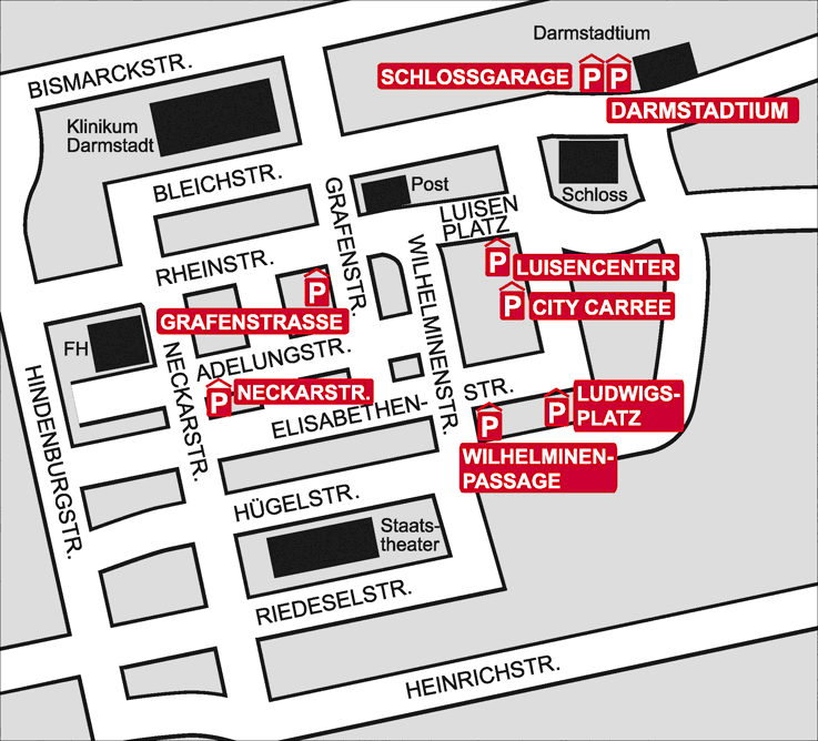 findet Ihr das Parkhaus Luisencenter und City Carree. |