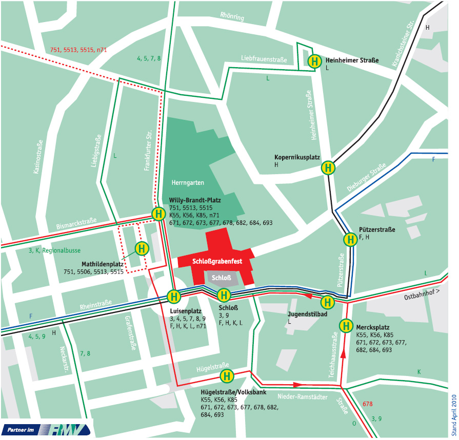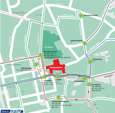 hier fahren öffentliche Verkehrsmittel das Schlossgrabenfest in